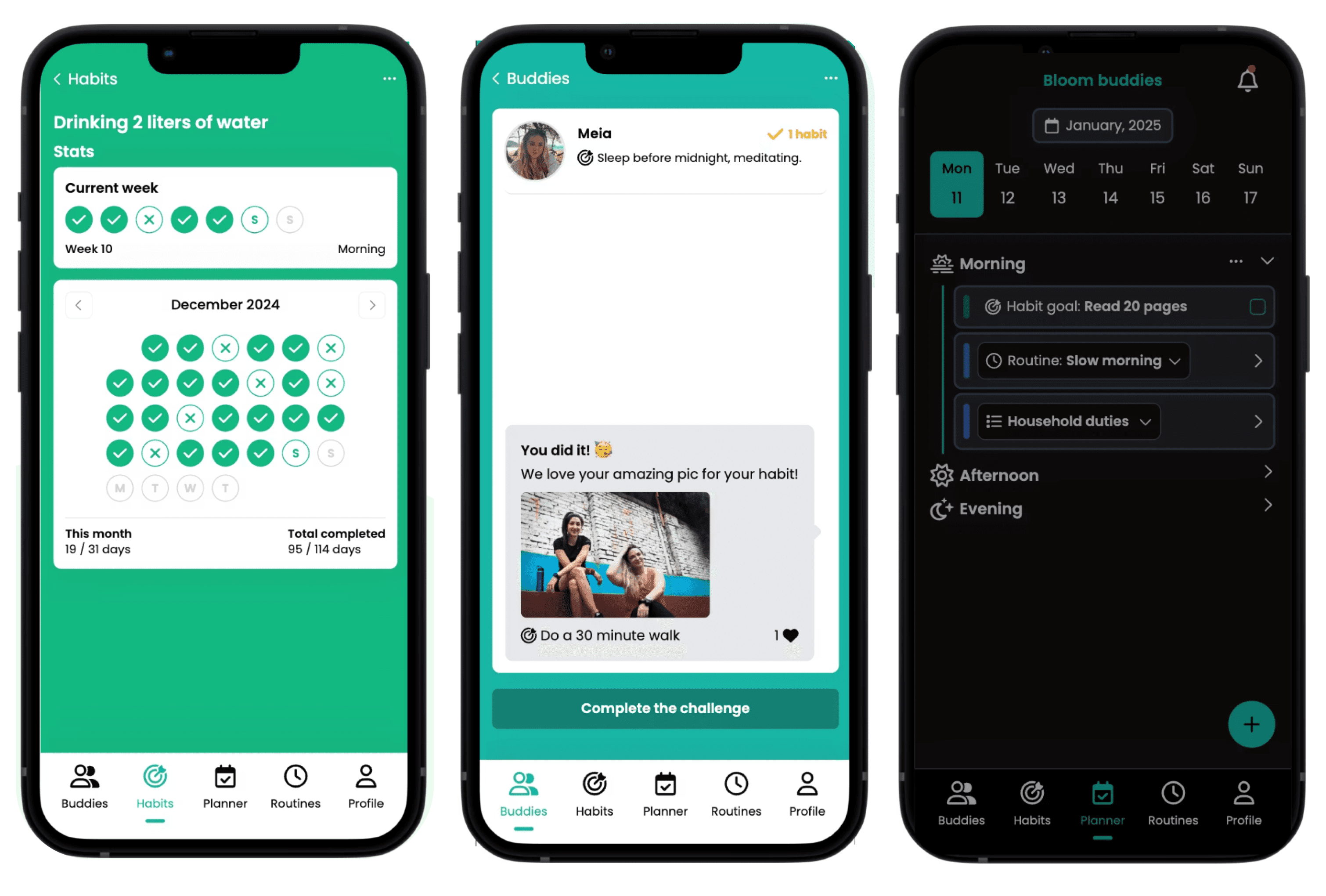 - Mogelijkheid om een habit challenge te doen met buddies.